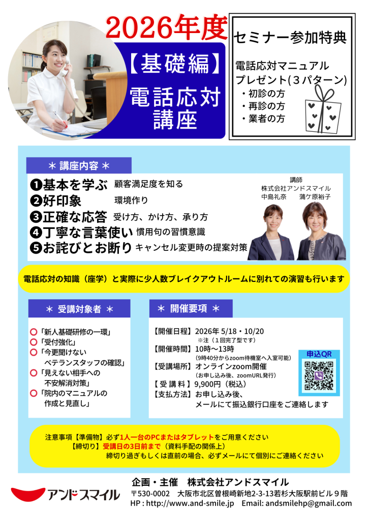 今やご家庭の固定電話に出る経験がほとんどない時代に、医院の電話の応対は未知の体験として不安を抱く人も多くありません。